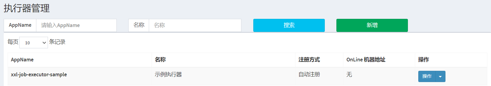 如果没有,需要在执行器管理中新增。如果注册方式为自动注册,online地址无需添加,执行器启动后,会自动注册。