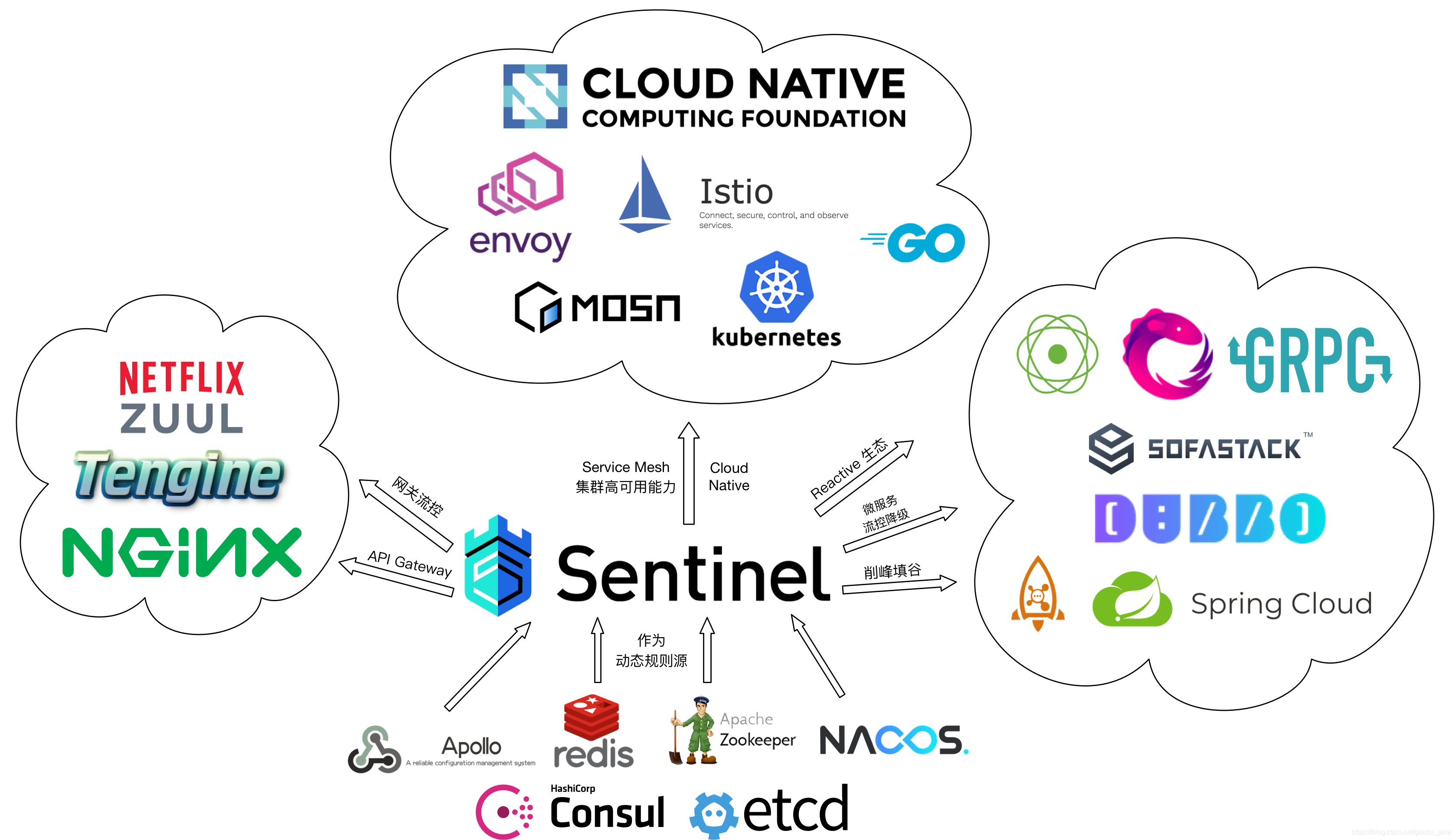 广泛的开源生态:Sentinel 提供开箱即用的与其它开源框架/库的整合模块,例如与 Spring Cloud、Dubbo、gRPC 的整合。您只需要引入相应的依赖并进行简单的配置即可快速地接入 Sentinel。