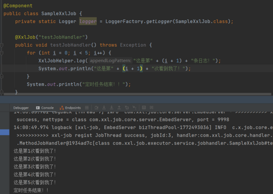 XxlJobHelper.log("这是第" + i + 1 + "条日志!");