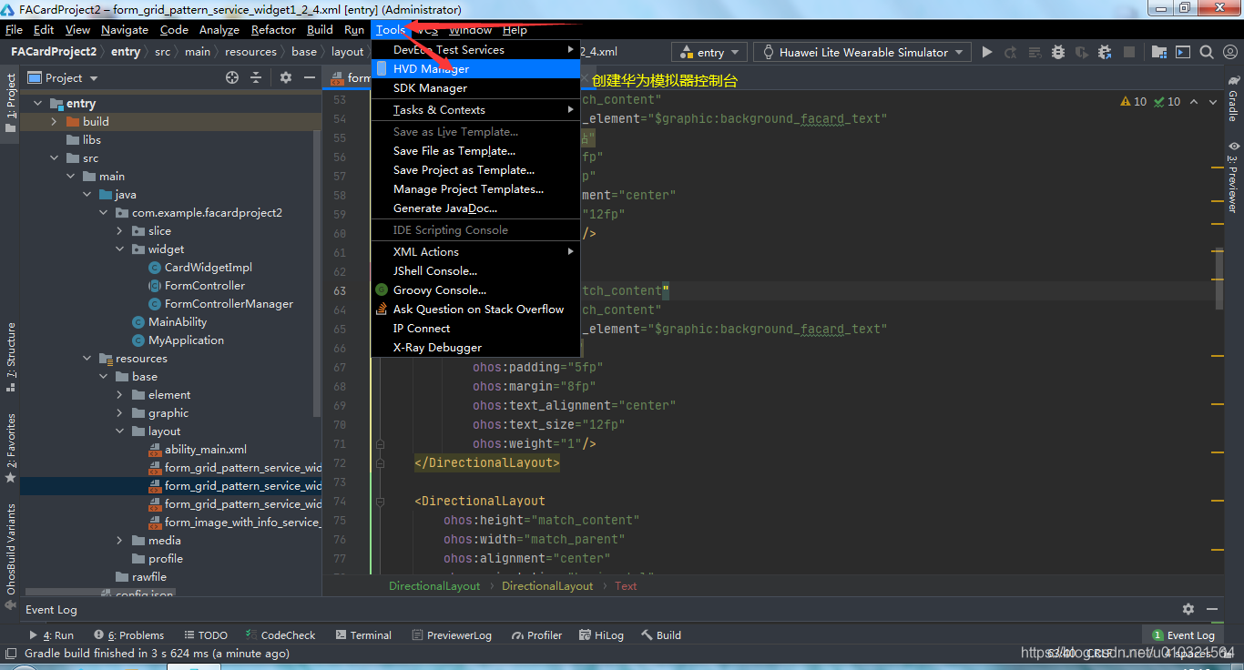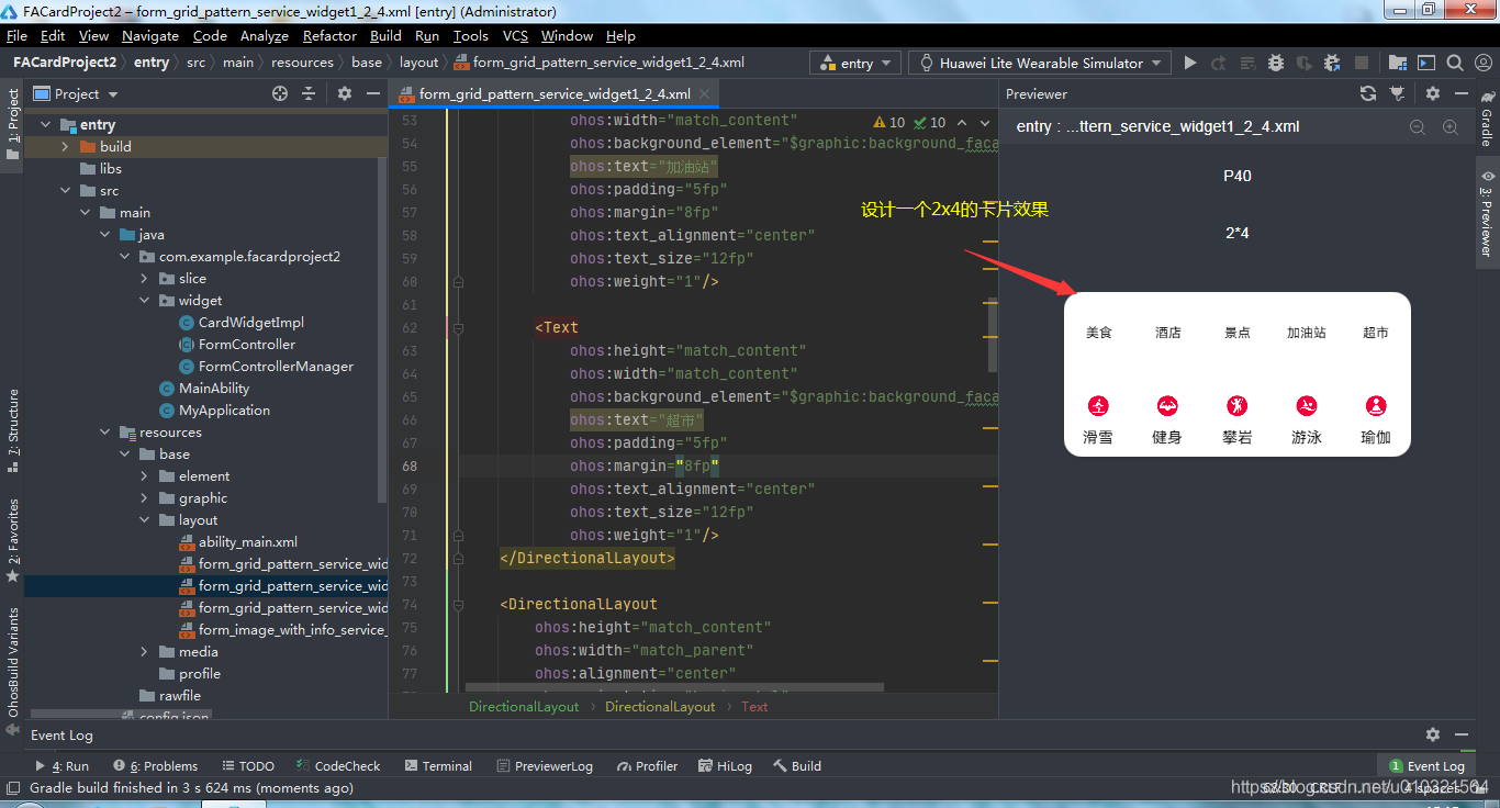 - 在layout文件夹下可以看到系统自动创建的所选择的卡片布局文件,开发者可以直接在该布局上设计自己的卡片效果