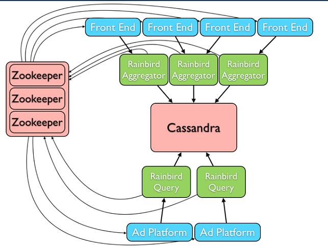 Rainbird一款基于Zookeeper, Cassandra, Scribe, Thrift的分布式实时统计系统,这些基础组件的基本功能如下: