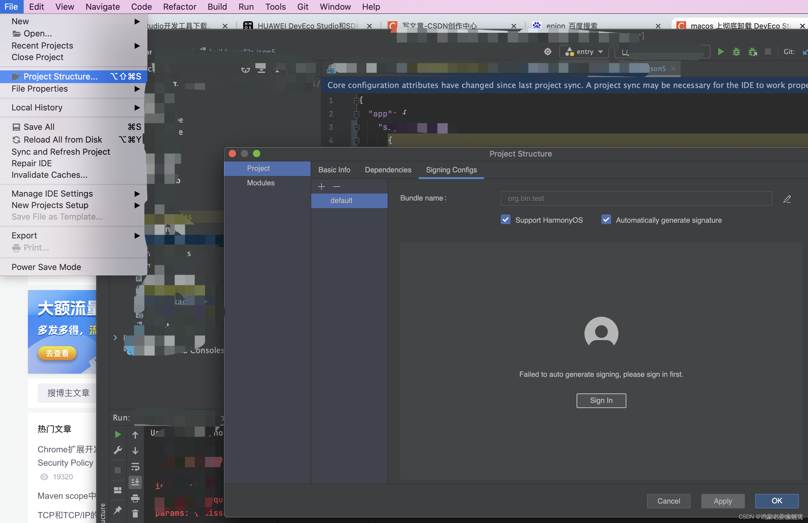 附:第一次如果运行失败,记得登录华为账号,自动生成签名