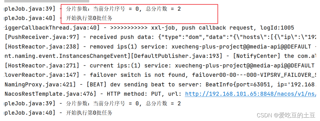 log.info("分片参数:当前分片序号 = {}, 总分片数 = {}", shardIndex, shardTotal);