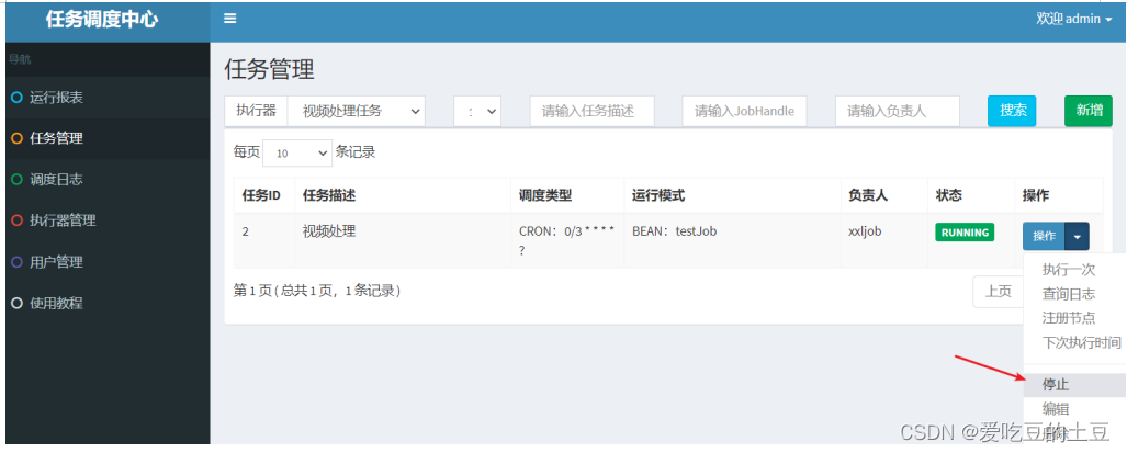 运行模式有BEAN和GLUE,bean模式较常用就是在项目工程中编写执行器的任务代码,GLUE是将任务代码编写在调度中心。