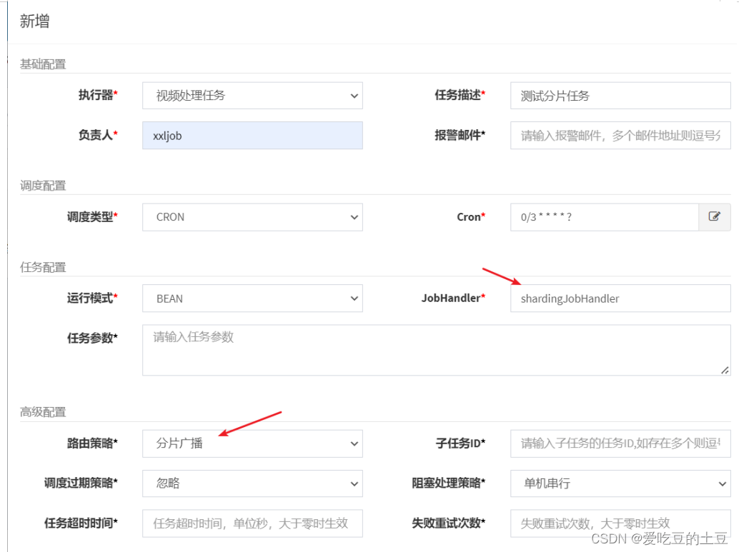 路由策略:当执行器集群部署时,调度中心向哪个执行器下发任务,这里选择第一个表示只向第一个执行器下发任务,路由策略的其它选项稍后在分片广播章节详细解释。
