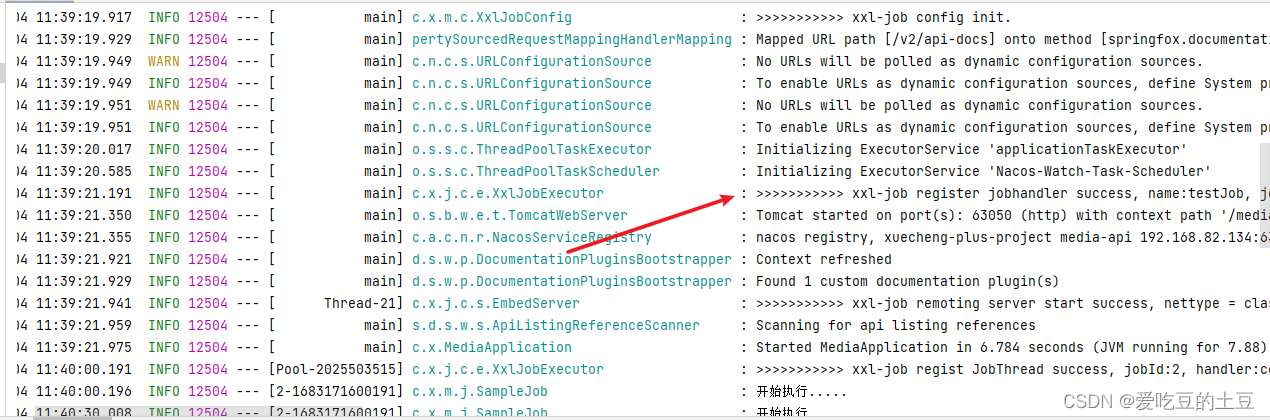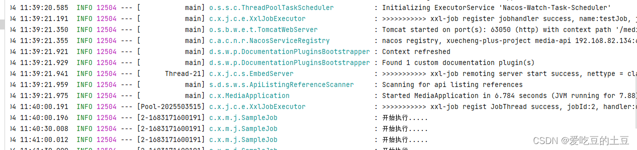 启动后观察日志,出现下边的日志表示执行器在调度中心注册成功