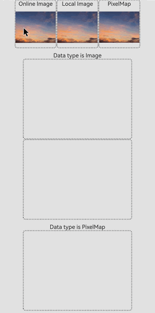 该示例展示了不同图片(在线图片资源、本地图片资源和PixelMap)在拖拽时组件的设置。