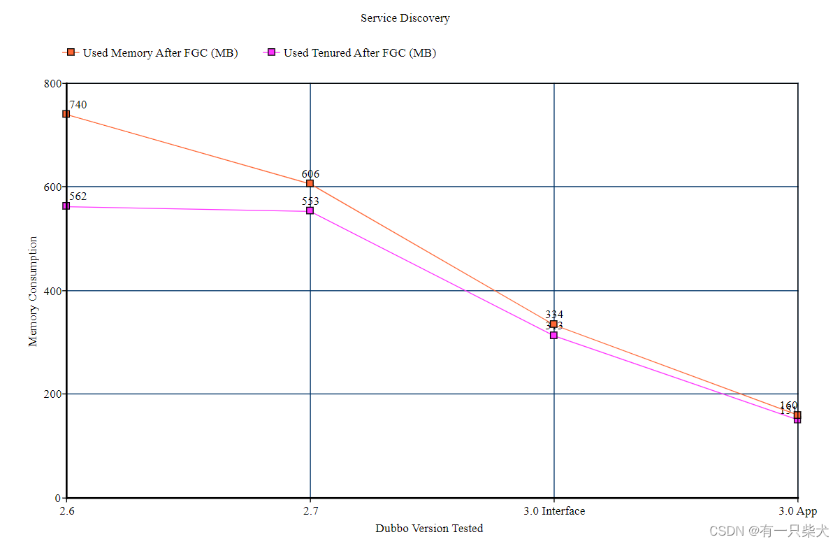 - 对比接口级服务发现,单机常驻内存下降 50%,地址变更期 GC 消耗下降一个数量级 (百次 -> 十次)