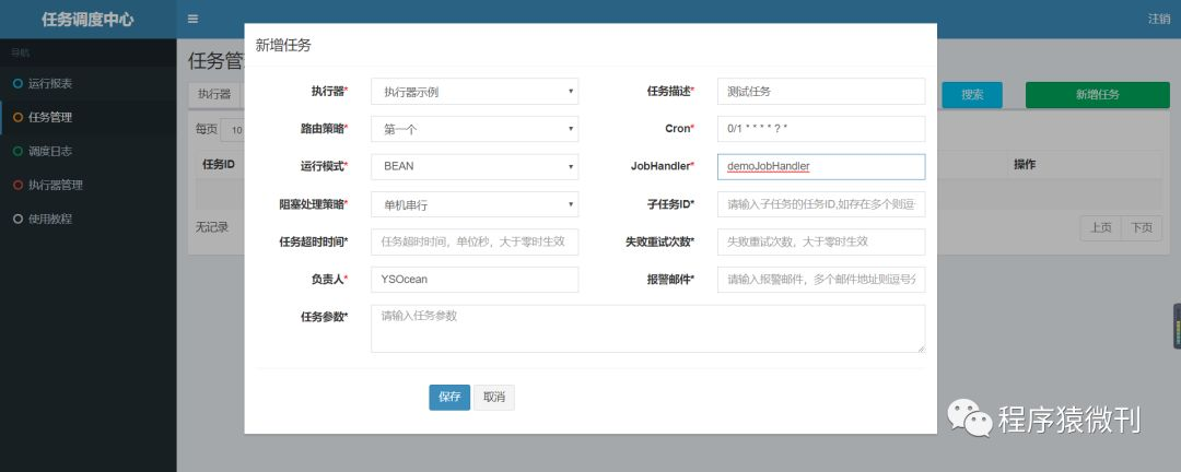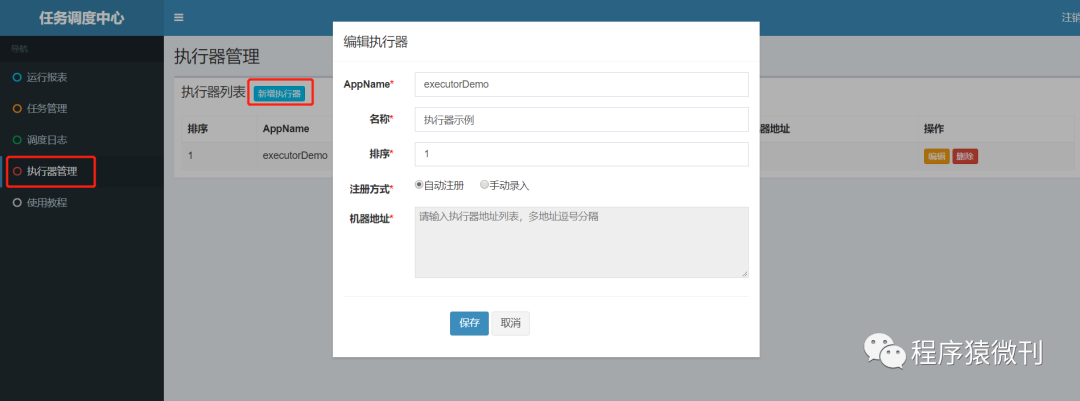 点击 执行器管理----》新增执行器---》,如下如下界面,然后填充此表格,点击保存即可。