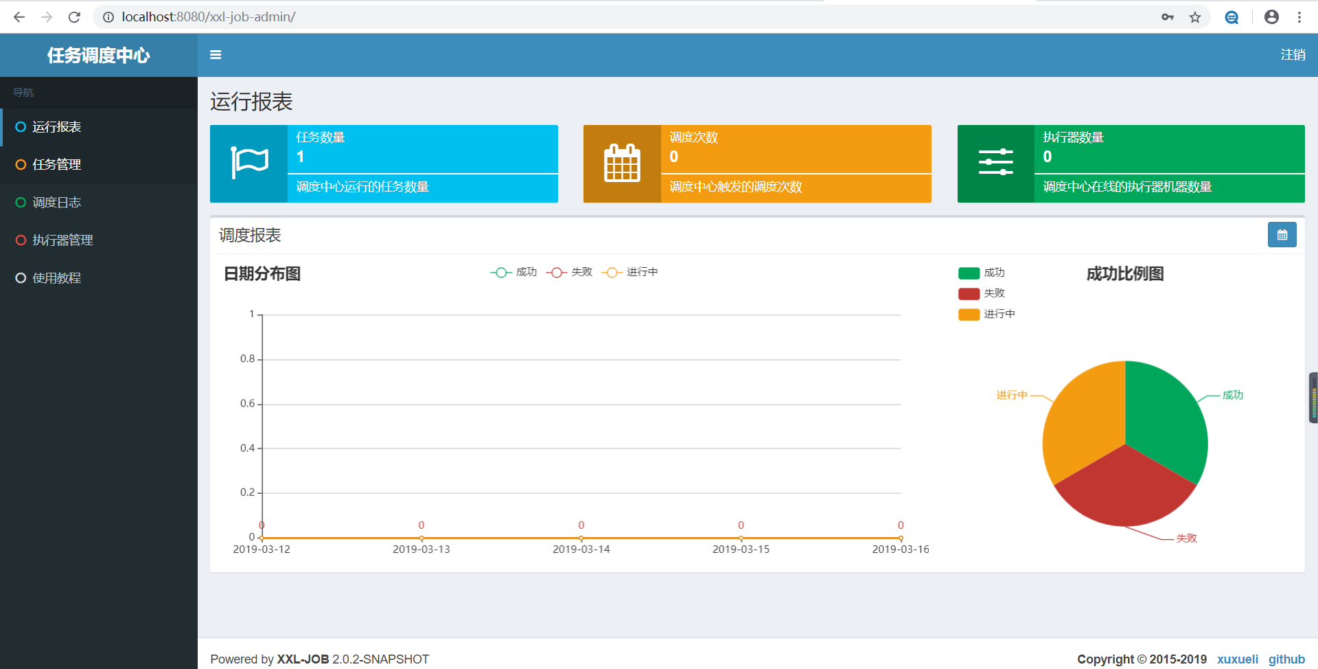 调度中心前面我们已经配置好了,启动该配置中心,进入http://localhost:8080/xxl-job-admin 界面。