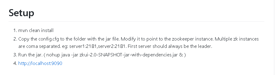 nohup java -jar zkui-2.0-SNAPSHOT-jar-with-dependencies.jar &后台启动就行了。默认端口9090 - 默认用户名密码 官网都给了。 admin:manager
