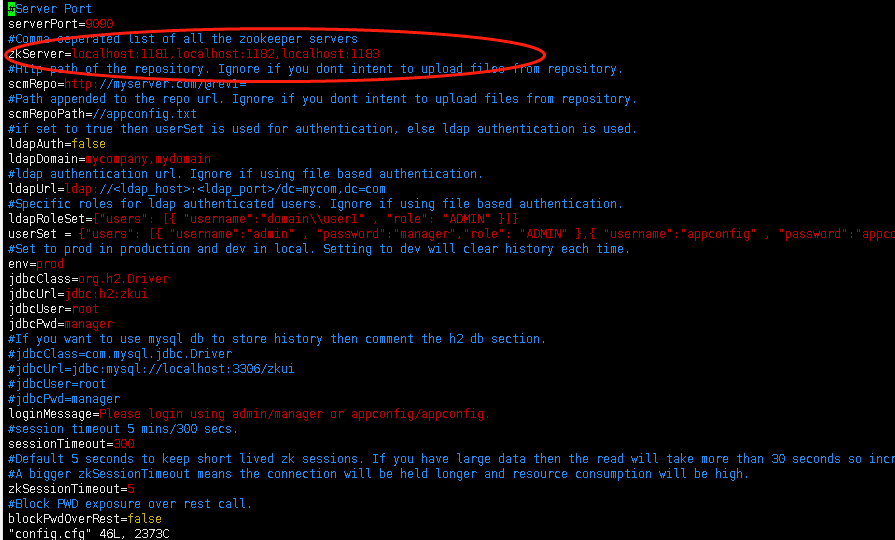 我们项目里使用的都是单机的zookeeper,但是在上面安装的时候我们也有集群zookeeper。端口分别是1181,1182,1183. 我们在zkui的配置文件config.cfg中配置集群即可。