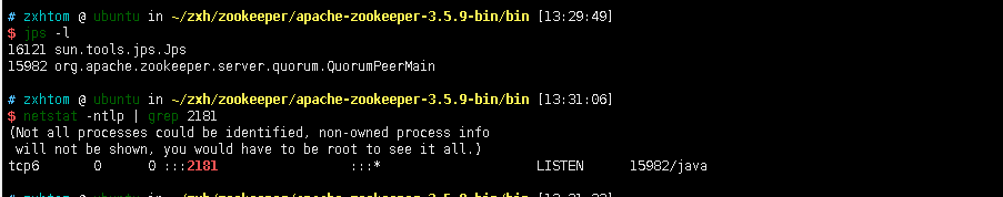 - 通过jps我们也能够看到zookeeper启动成功了。