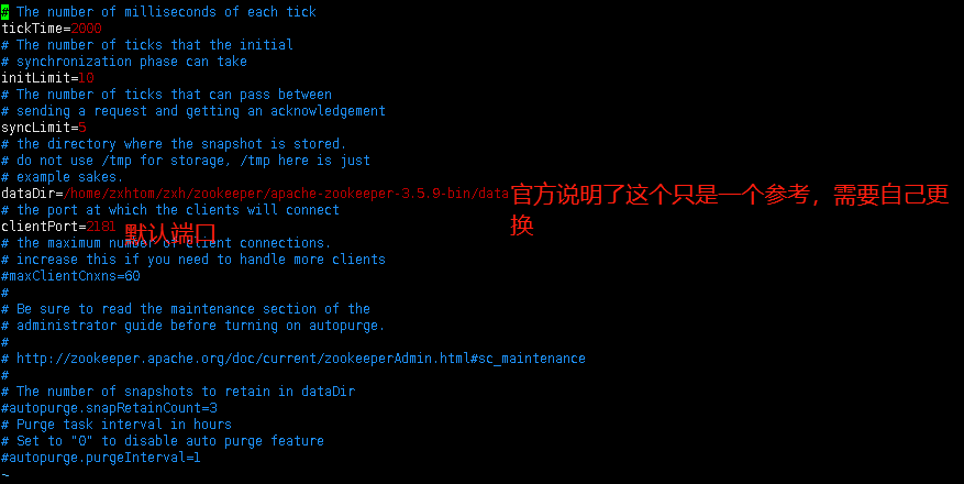 - 在jar包同级官网提供了一份zookeeper配置模板。在里面我们可以配置我们的zookeeper。 如果是集群就配置多个就行了。