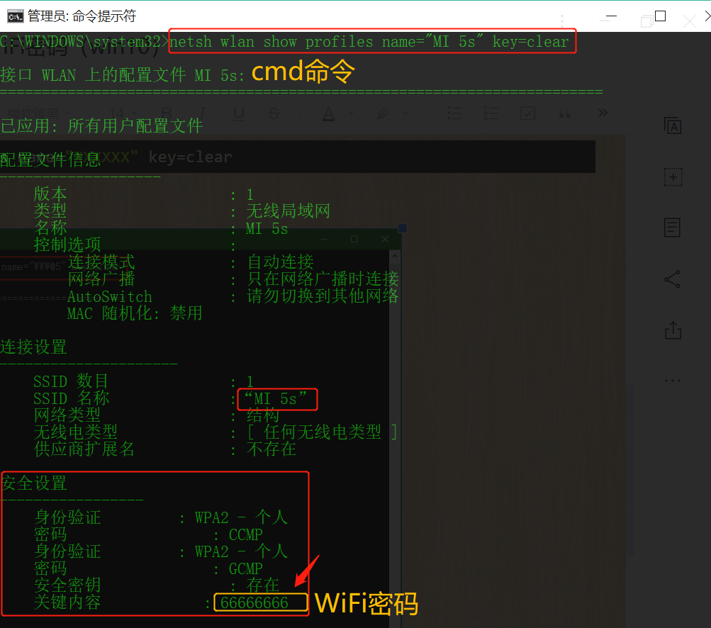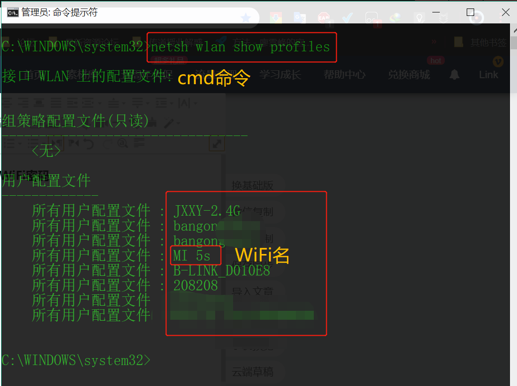 cmd命令查看已连接的WiFi密码