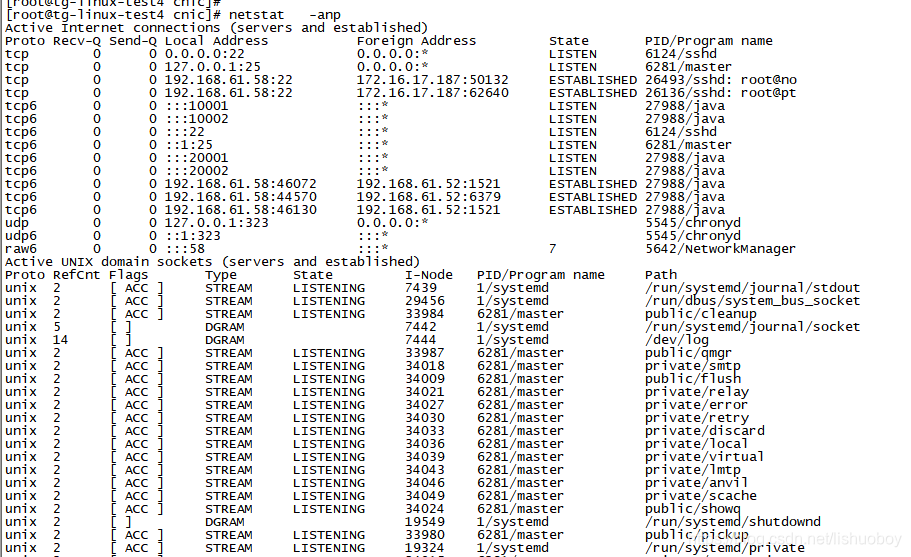 如果没有安装先安装yum -y install net-tools查看所有进程占用端口netstat -anp查看java进程占用的端口netstat -anp|grep java查看占用某端口的进程netstat -anp|grep 10001...