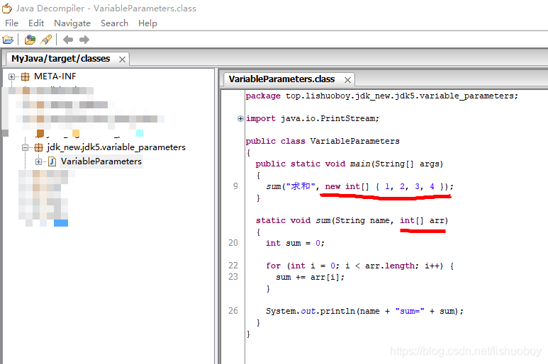 ④可变参数本质就是一个数组,arr就是一个数组的引用地址(反编译工具查看源代码)