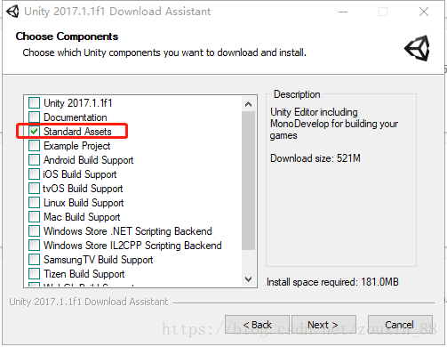 2.运行UnityDownloadAssistant-2017.1.1f1.exe,选择Standard Assets。