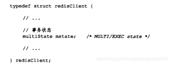 每个Redis客户端都有自己的事务状态,这个事务状态保存在客户端状态的mastate状态里: