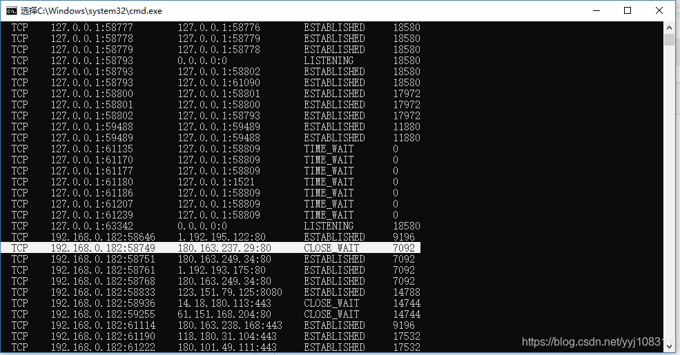 win10下查询80端口进程命令