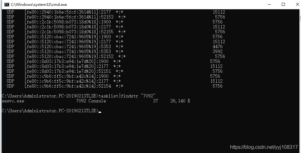 出现如下结果,可以看到占用80端口的进程pid=7092