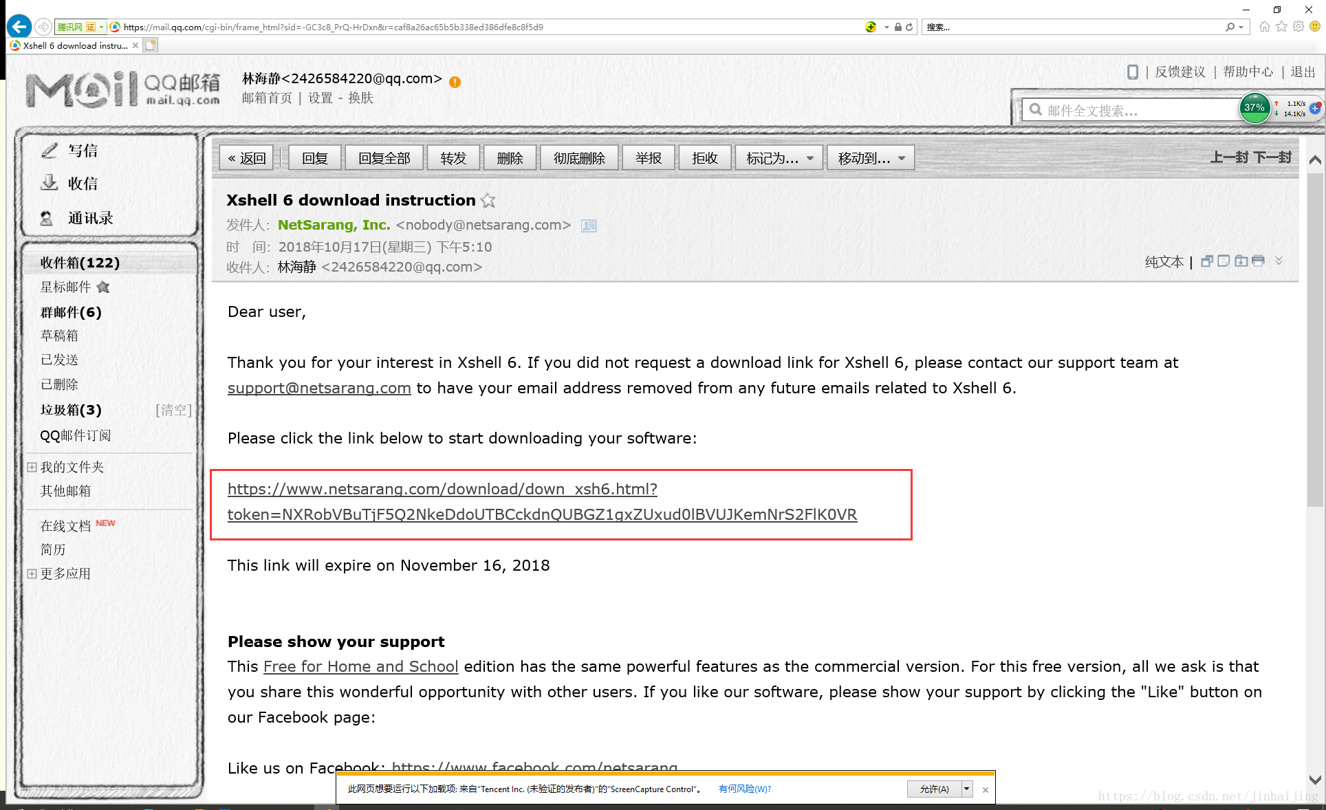 一、访问连接https://www.netsarang.com/download/down_form.html?code=622下载免费版二、注意邮箱填写能收到邮件的三、查看邮件,点击连接四、点击红框进行下载注意:如果用win系统下载可能会超级慢或者360会进行劫持,因为是.exe文件,360会默认为病毒文件。此时可手机查看邮件点击下载链接进行下载,下载完成后将安装包发送到电...