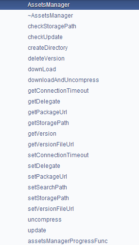 Cocos2d-x 给出的例子是AssetsManagerTest,进入会发现三个菜单项: