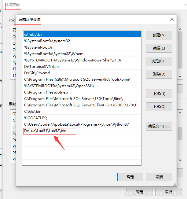 首先是进入lua官网:https://www.lua.org/点击GetStart点击LuaDist 进入下载界面点击Windows86进行下载:下载好之后,进行解压就行:解压之后,在Windows环境变量Path添加解压文件的bin目录:添加完成之后,进入windows命令行,输入lua回车,出现版本信息则说明配置成功,否则配置失败:...