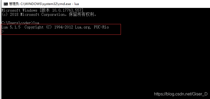 添加完成之后,进入windows命令行,输入lua回车,出现版本信息则说明配置成功,否则配置失败: