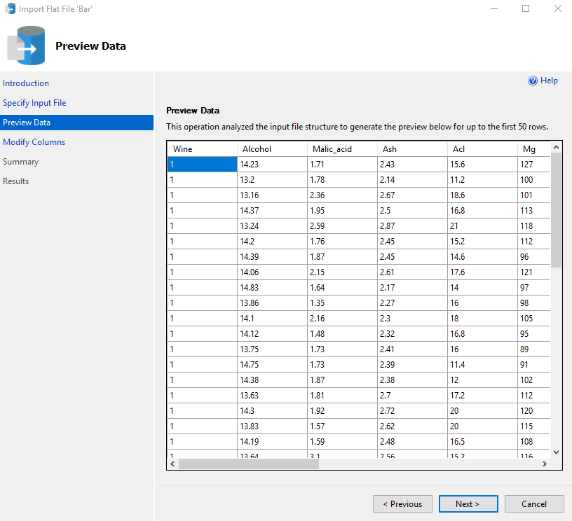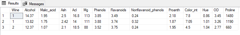 In short, you can perform all the operations on the imported “wine” table that you perform on any SQL table, which you create from scratch in SQL Server.