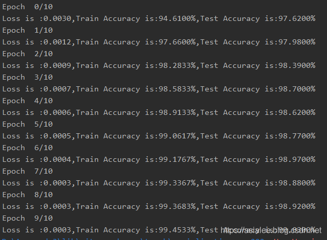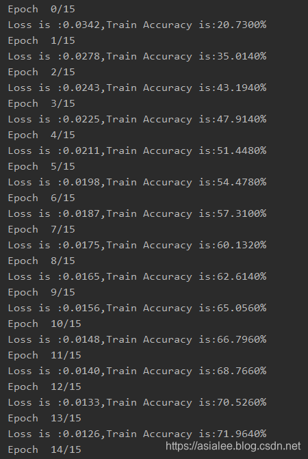 print("Loss is :{:.4f},Train Accuracy is:{:.4f}%".format(running_loss / len(trainset), 100 * running_correct / len(trainset)))