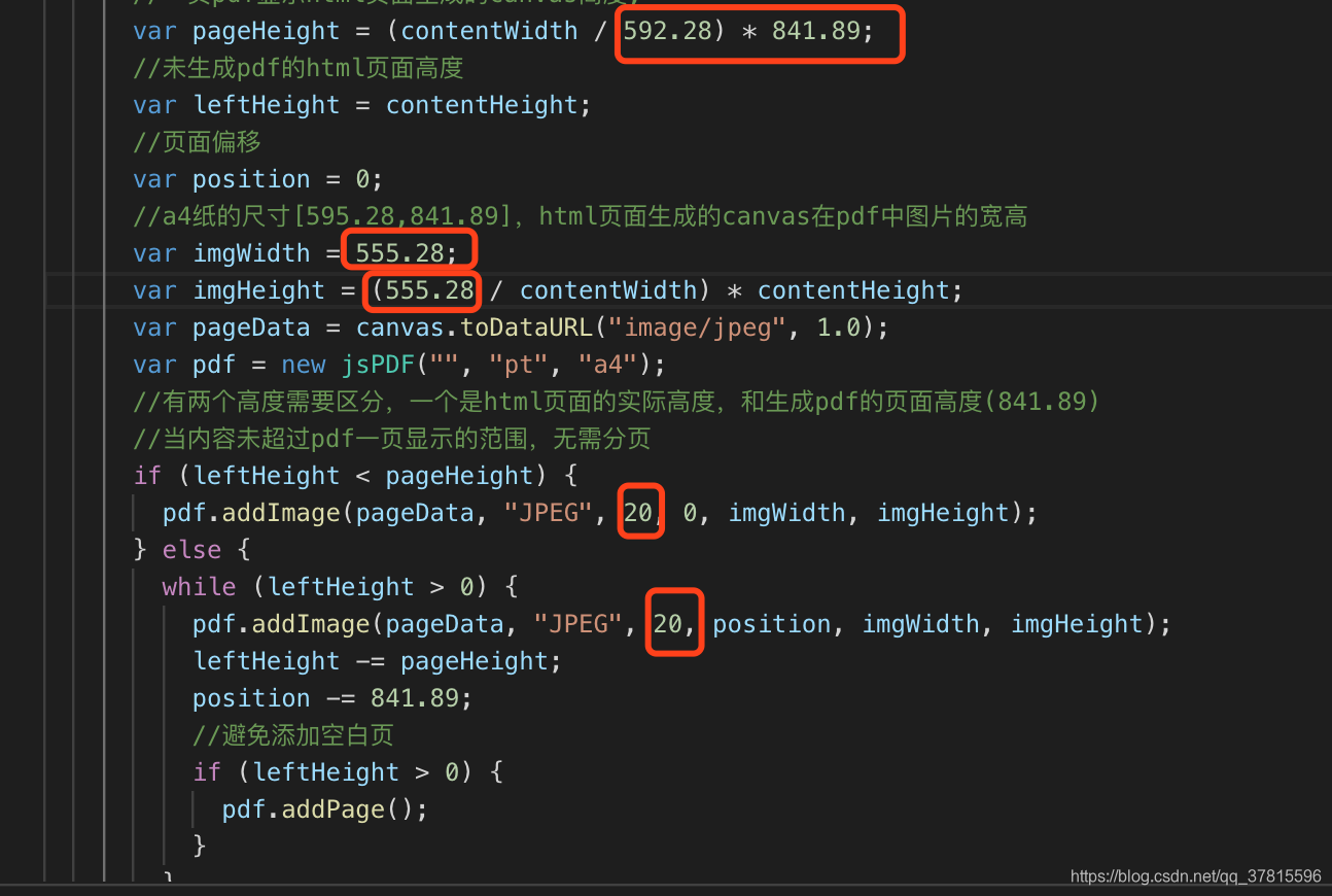 pdf.addImage(pageData, 'JPEG', 0, 0, 595.28, 592.28 / canvas.width * canvas.height);