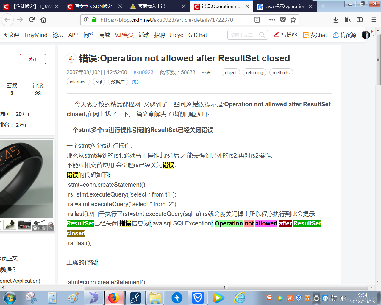 java 控制台老是报错:Operation not allowed after ResultSet closed