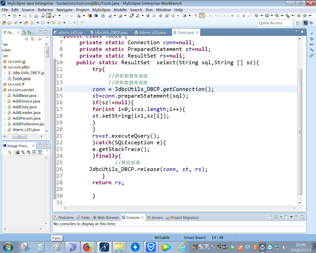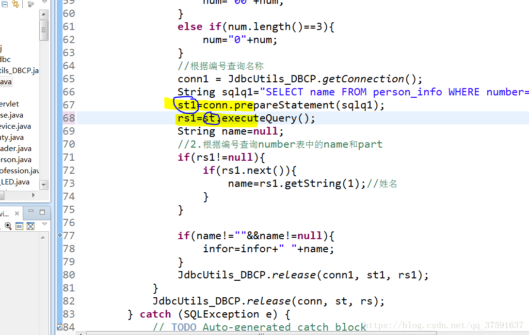 百度了很多,都是说一个st对应一个rs,真是复杂!怎么改都报错!!总结一下自己的错误:最常见的的是查询操作,因为利用到rs结果集while(rs.next){list.add(rs.getString(1))}的时候,劝各位不要放在工具包jdbcutils的方法里面,如果放在工具包jdbcutils的方法里面,如下图:如上方法----操作结束就直接关...