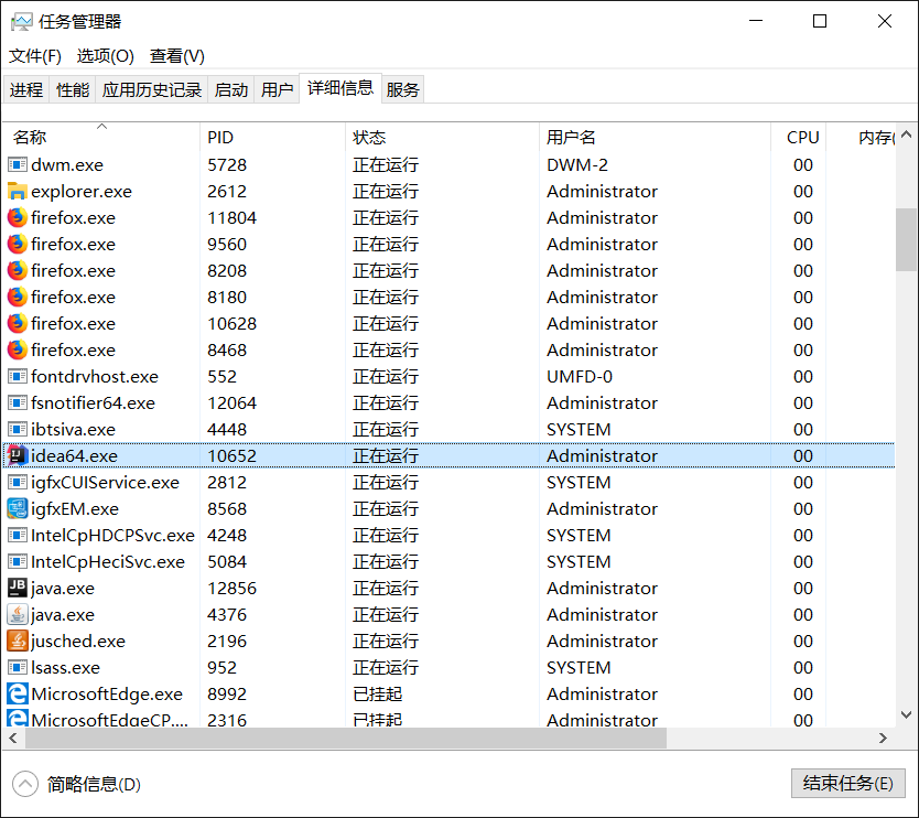 去任务管理器中查找PID为10652