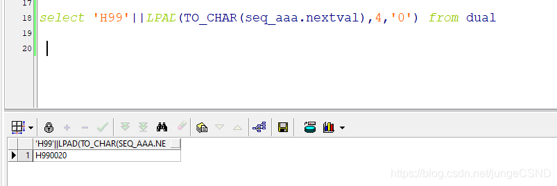 涉及到历史数据处理,需要对某一列生成规则化代码,如‘H99’+0001update prpccarcooper a set a.cooperationoutletscode='H99'||LPAD(TO_CHAR(seq_aaa.nextval),4,'0');select 'H99'||LPAD(TO_CHAR(seq_aaa.nextval),4,'0') from dual;...
