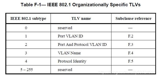 标准的LLDP 报文格式中对IEEE802.1字段的规定如下: