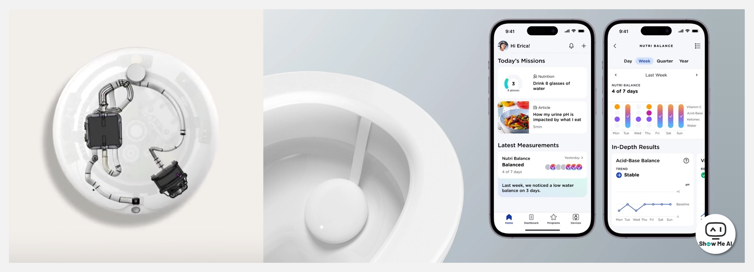 该公司指出,尿液包含 3000 多种代谢物,可以反应身体健康状况。热传感器检测到尿液存在时,会引导样本流向收集入口并注入测试仓,这里的光学传感器对检测进行读取并回传至App,随后的马桶冲水会对系统进行清洁。(来源:Tech Crunch)
