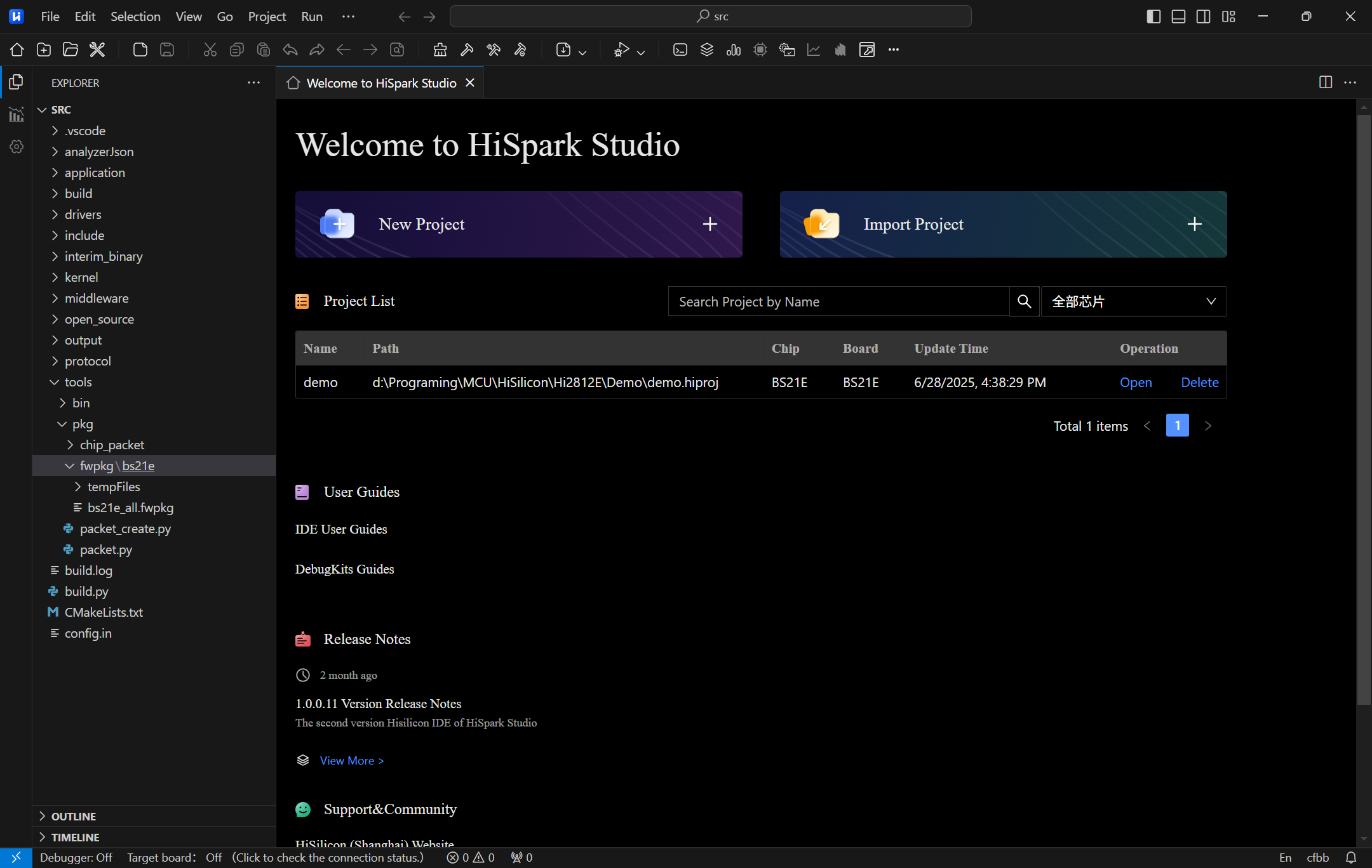 星闪的开发IDE是使用HiSpark Studio,这款IDE其实就是VSCode魔改过来的,使用方法几乎一模一样,除了工具栏不一样以外,下载地址:HiSpark Studio