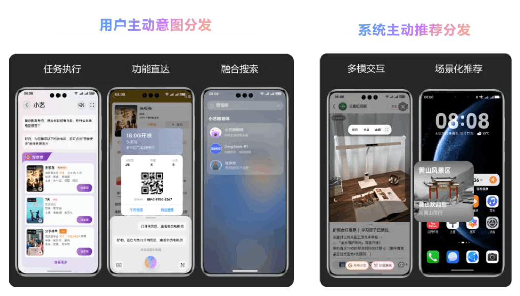 在 HarmonyOS 中,意图框架是连接用户需求与服务能力的桥梁。它支持两种分发模式:用户主动意图和系统主动推荐,通过语音、小艺搜索、导航条等入口,打破 App 孤岛,实现服务直达。