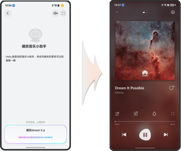 你只需几步操作,就能将你的App接入小艺开放平台,实现语音唤醒和智能交互。例如,开发了一个音乐App,用户在小艺App中搜索对应的智能体,输入意图“请播放《Dream It Possible》”,你的App就能自动拉起并播放对应歌曲。是不是有点酷?