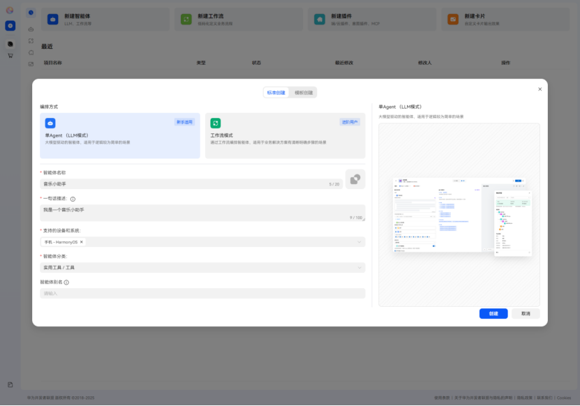 更多高级使用技巧参考官网鸿蒙智能体开发指南:https://developer.huawei.com/consumer/cn/doc/service/developer-guide-0000002469667881
