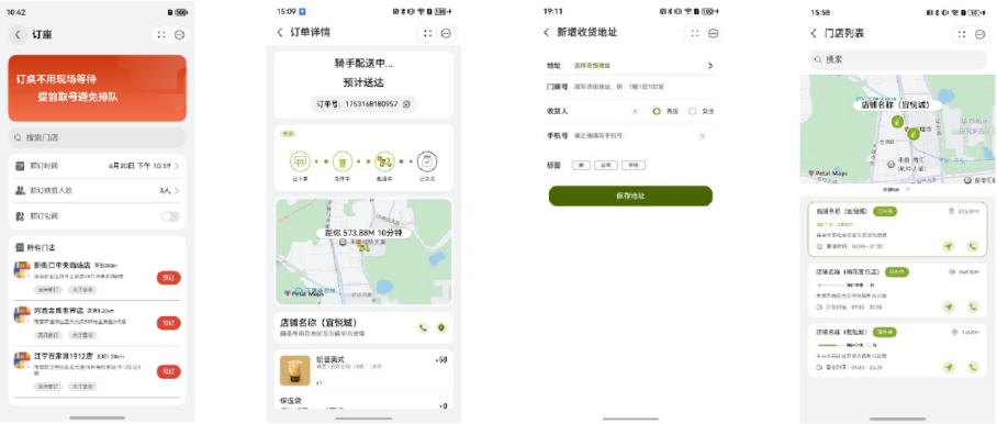 - 订单详情组件:提供了订单详情展示功能,包含订单状态、制作和配送信息、店铺信息、商品列表、优惠信息和订单信息。