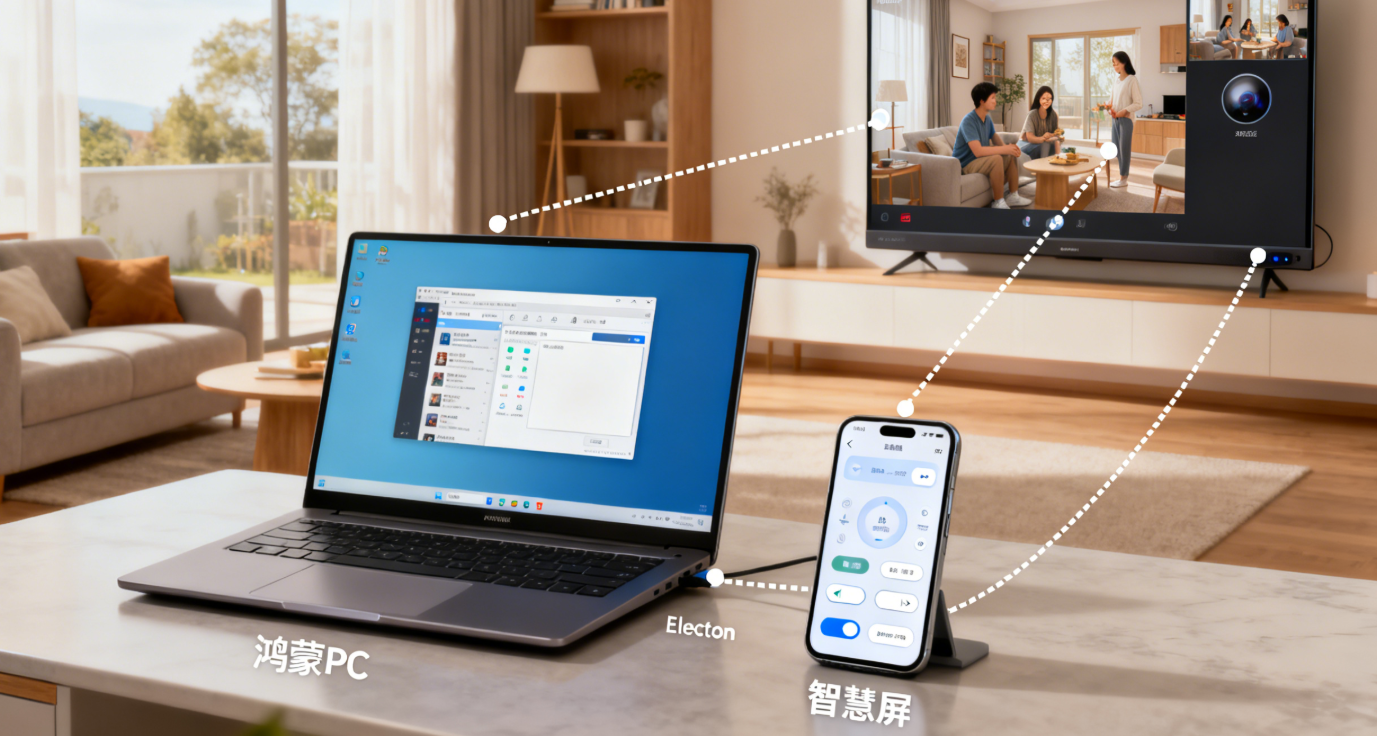 - 场景描述:开发跨端办公套件(如文档编辑、会议软件),PC 端用 Electron 实现复杂编辑功能,智慧屏端实现投屏演示,手机端实现移动审批。
