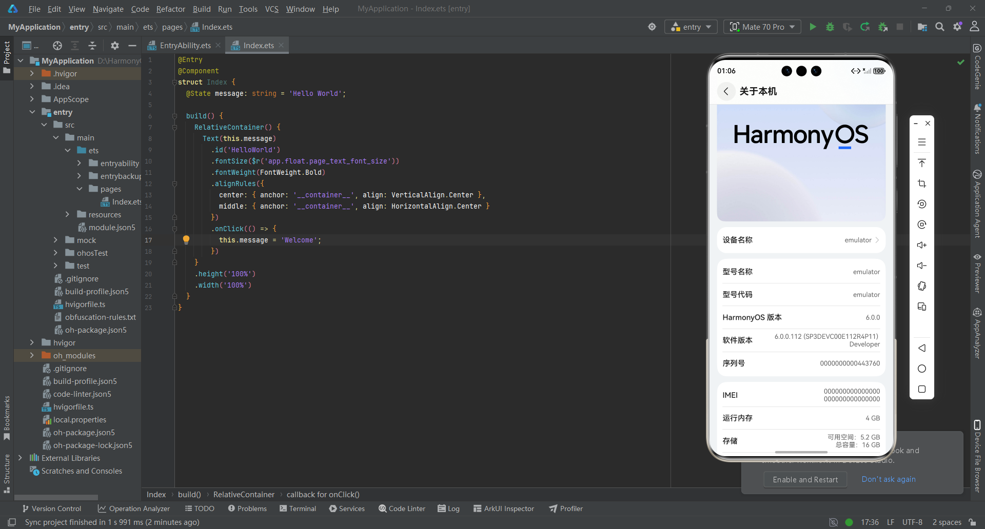 统一 API 版本号:项目加载完成后,点击“File” → “Settings” → “HarmonyOS SDK”,记录当前 Compile SDK Version(如 6.0.0);在项目中全局搜索默认版本号(如 5.0.0),将