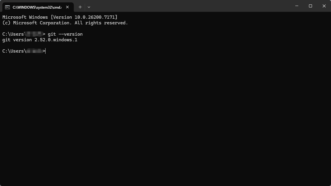 cmd打开命令提示符,输入git --version若显示版本信息,则安装成功。
