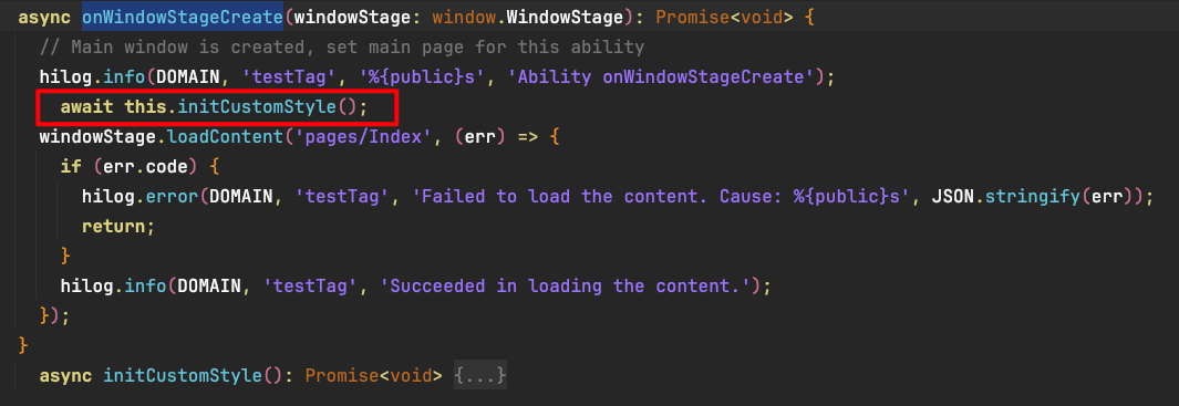 hilog.error(DOMAIN, 'testTag', `Failed to initialize custom style. Code is ${error.code}, message is ${error.message}`);