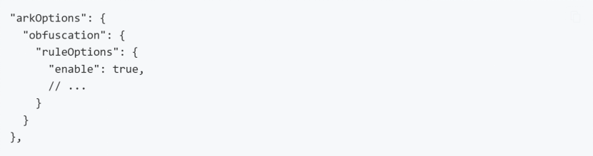 - 混淆选项开启较少;开启-enable-property-obfuscation、-enable-toplevel-obfuscation、-enable-export-obfuscation、-enable-filename-obfuscation选项。