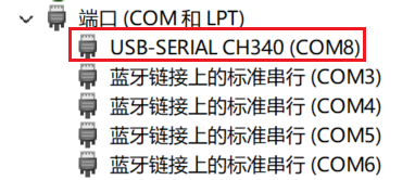 开发板连接电脑,记得提前安装CH340串口芯片的驱动,驱动正常的话能在设备管理器看到对应的串口设备。