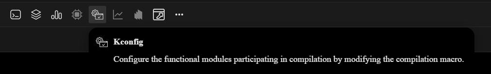 SDK里面包含了很多的官方例程,我们可以选择编译。星闪使用了和ESP32一样的Kconfig配置方法,点击工具栏的这个按钮可以打开配置框。